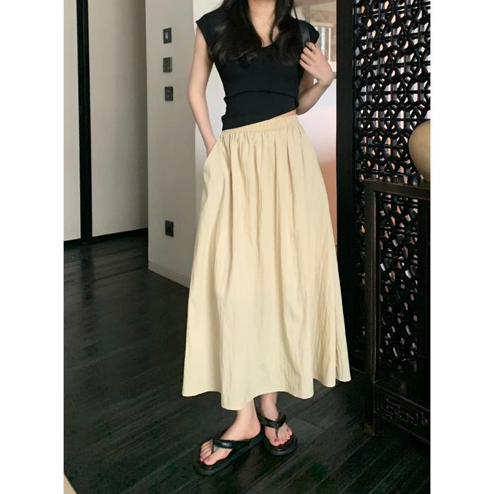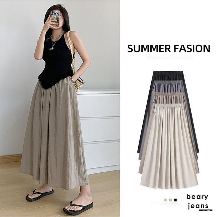 Beary Jeans Bj126 | Japanese Midi Long Skirt Rok Panjang Wanita Motif Polos Maxi Skirt Women Casual Vintage Streetwear D