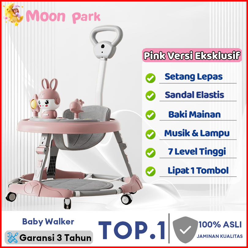 Beige Baby Walker Alat Belajar Jalan Dapat Dilipat Portabel Bayi Kotak Musik Perlengkapan