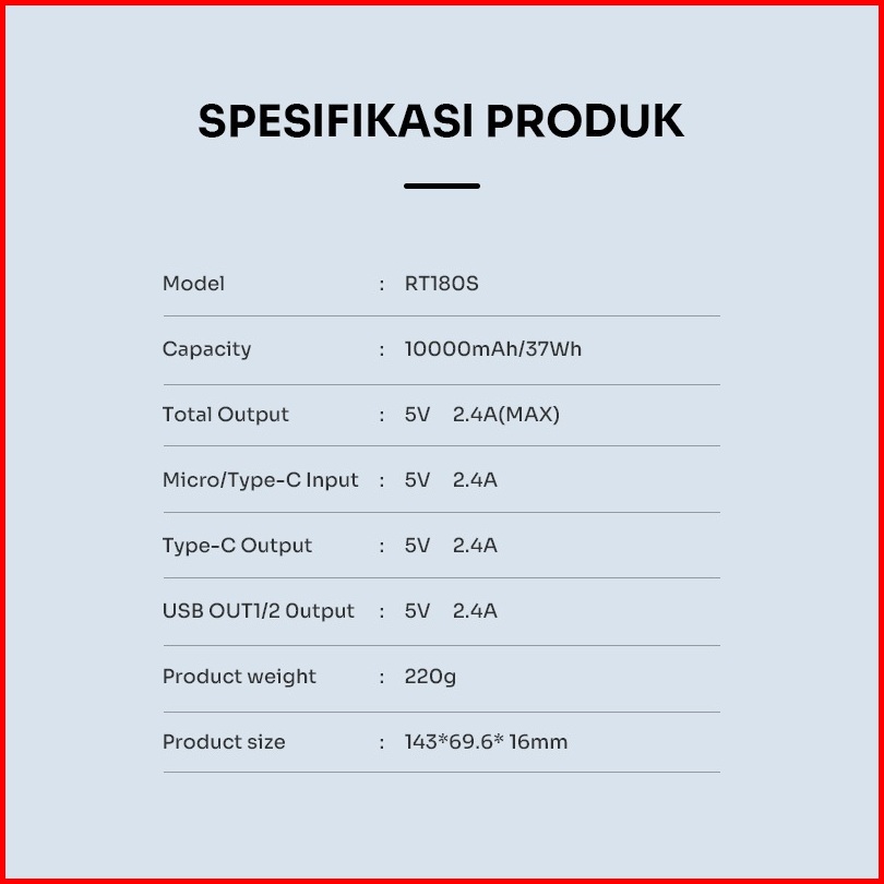Power Bank Robot Rt12 10000mah - 3 Output Dual Input Type-c Micro Fast Charging 12w Slim Ringan - Garansi Resmi 1 Tahun
