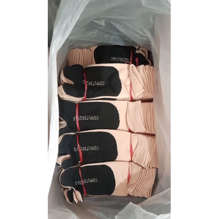 12 Pasang grosir Kaos Kaki Jempol Cream Tapak Hitam Pendek dan Panjang