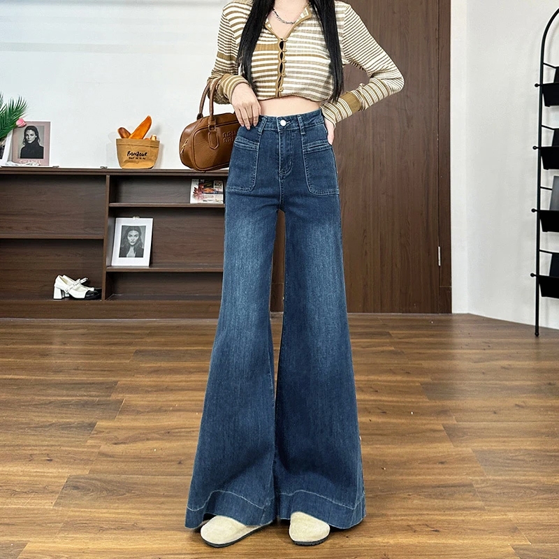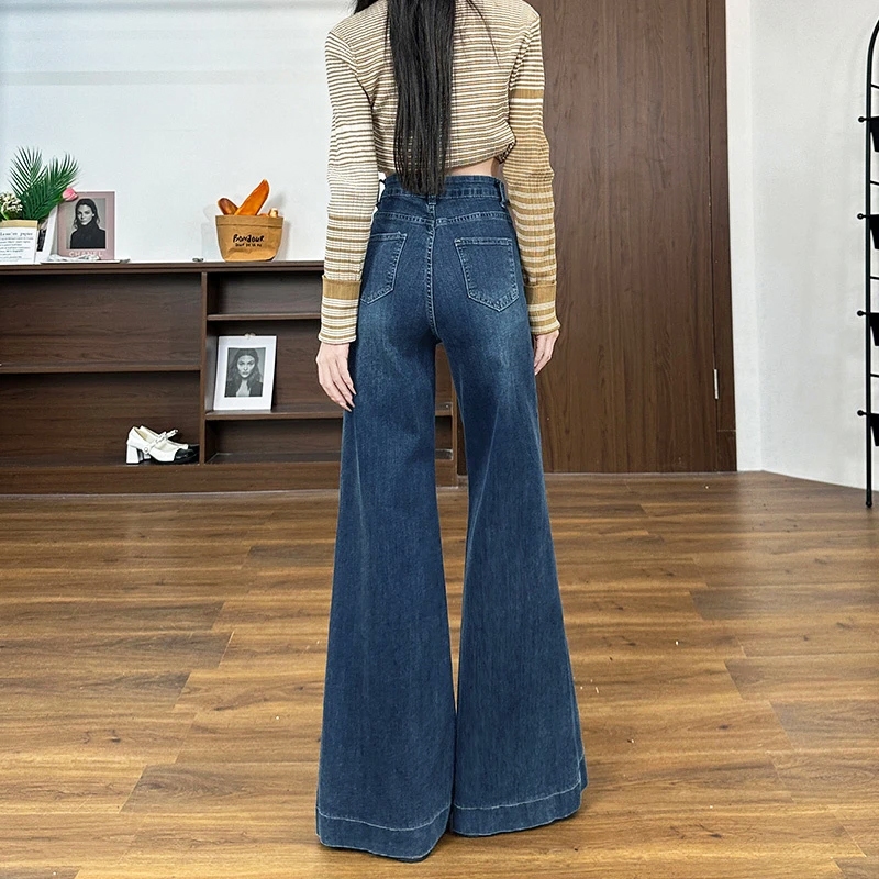 【Real pict】 Biru dark Permium High Waist Baggy Jeans Wanita Wide Leg Oversize Loose Style Fashion pants