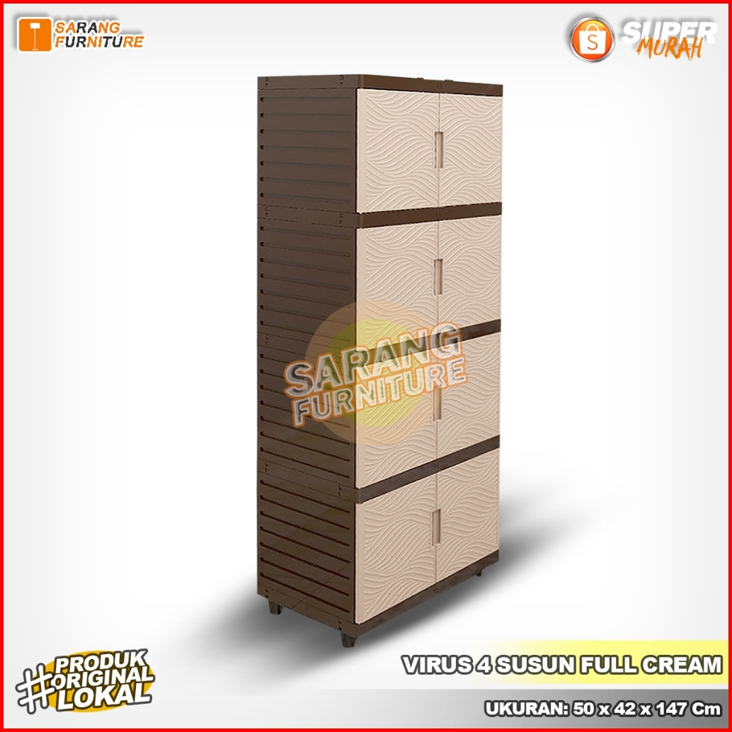 Lemari Plastik Virus Kingdom 4 Susun Lemari Pakaian Minimalis Cabinet Serbaguna - Cream