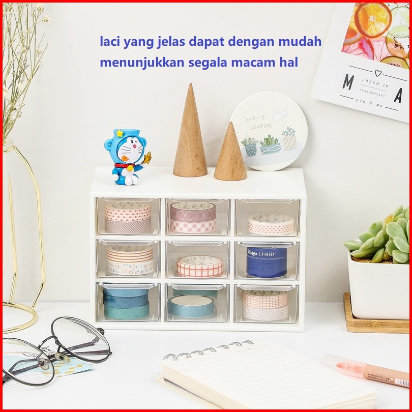 Lemari Plastik Lemari Plastik Susun Mini 9 Sekat Kotak Penyimpanan Serbaguna Laci Mini