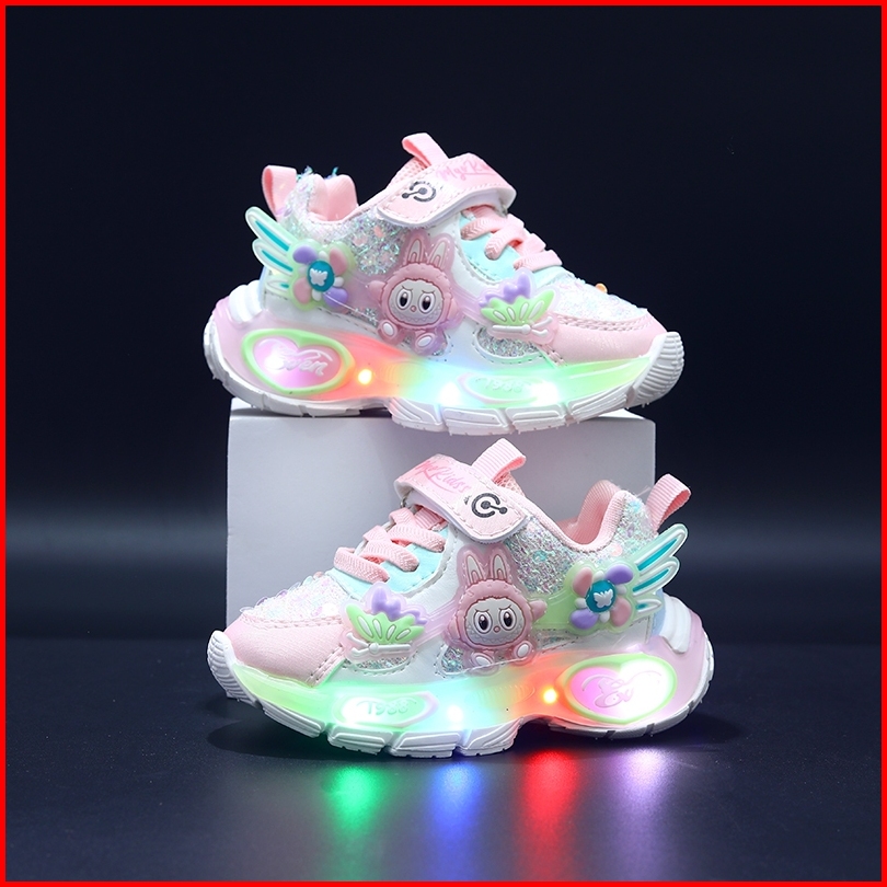 Babyfit Size 21-30 Laboehboe Sepatu Anak Perempuan Lampu Led Sneakers Kartun Karakter Sepatu Import Qt-0904r