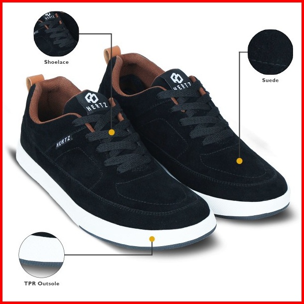 Hertz - Sepatu Sneakers Pria Terbaru H 3083 Casual Kets Sekolah Kuliah Warna Hitam