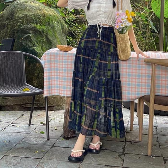 Choice - 4252# Rok Enrica Plaid A-Line Skirt Import