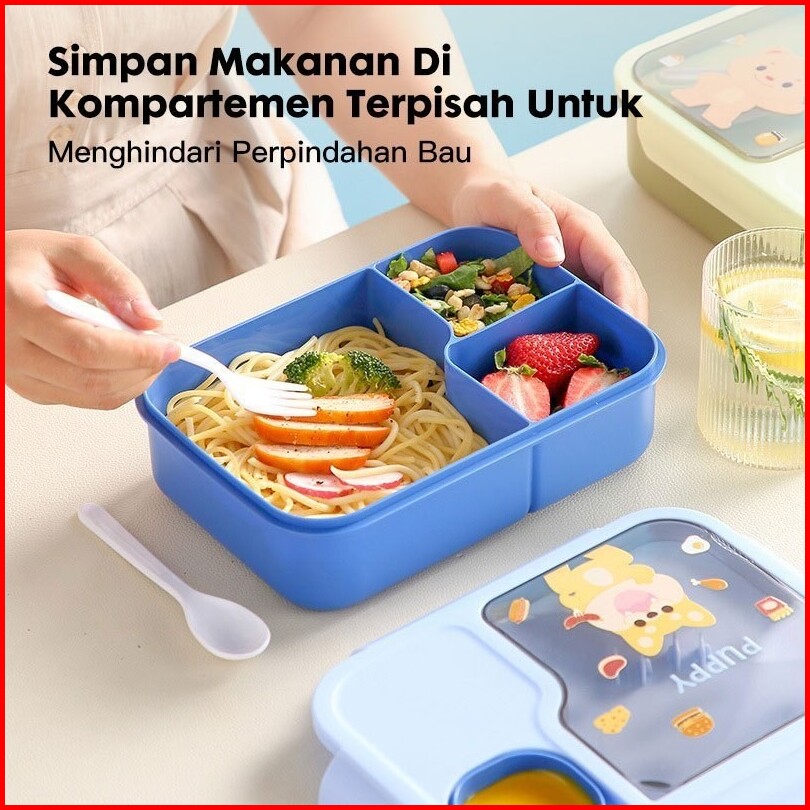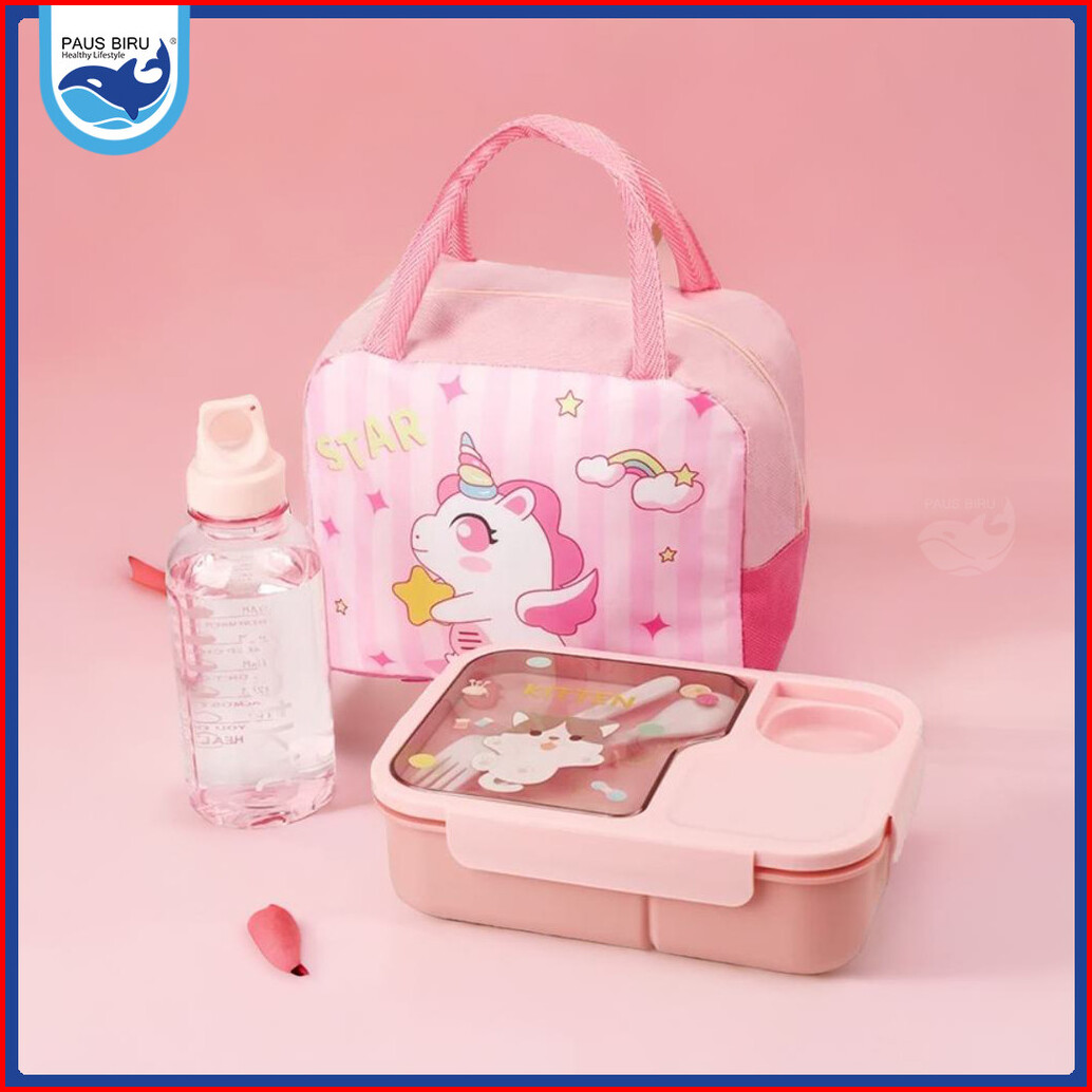 Paus Biru - Paket Tempat Makan Anak 1450ml Lunch Box Set 3 Sekat Bpa Free Kotak Bekal Karakter Tas Bekal Medan Ready Sto