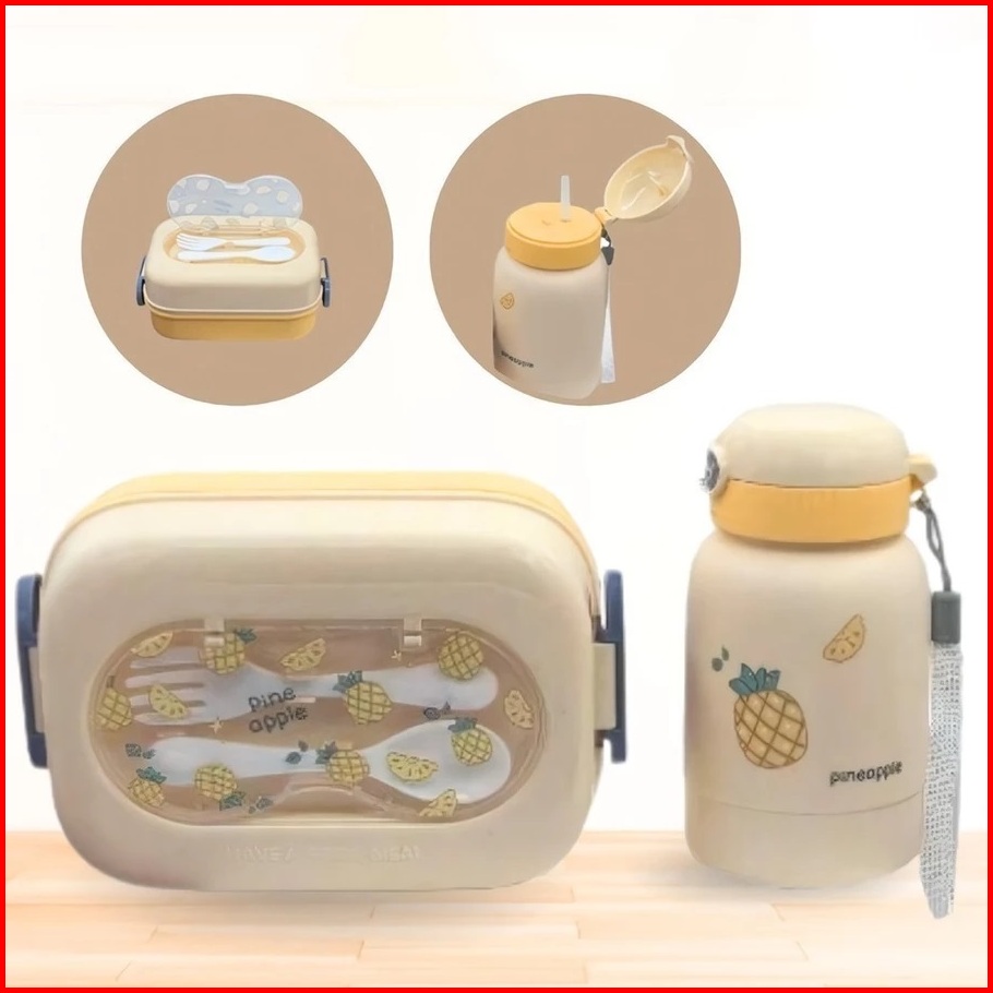 Lunch Box Set Anak Sekolah Kotak Makan Bekal Lengkap Dengan Botol Minum Dan Sendok Garpu Tj50