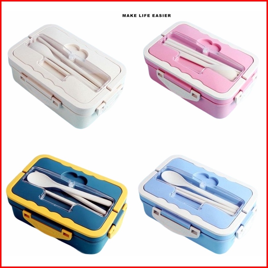 Lunch Box Kotak Bekal Makan Bento Wheat Siang Bahan Jerami Pegangan 8288 Melengkung Sendok Dan Sumpit Chocho 88 Shop