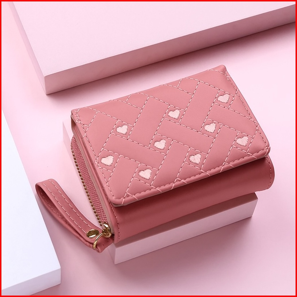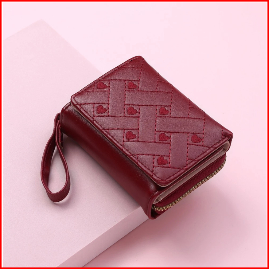 Dompet Wanita Aurora Mini Lipat Motif Love Bordir Dompet Cewek Lucu Imut Elegan Warna-warni Dompet Kartu Koin Uang Kerta