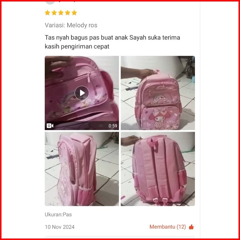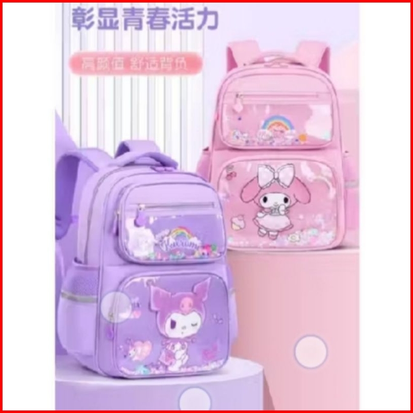Tas Sekolah Anak Laki-laki Anak Perempuan Backpack Sekolah Anak Tk Sd Smp Sma Kuliah Multifungsi Tas Motif Kuromi Printi