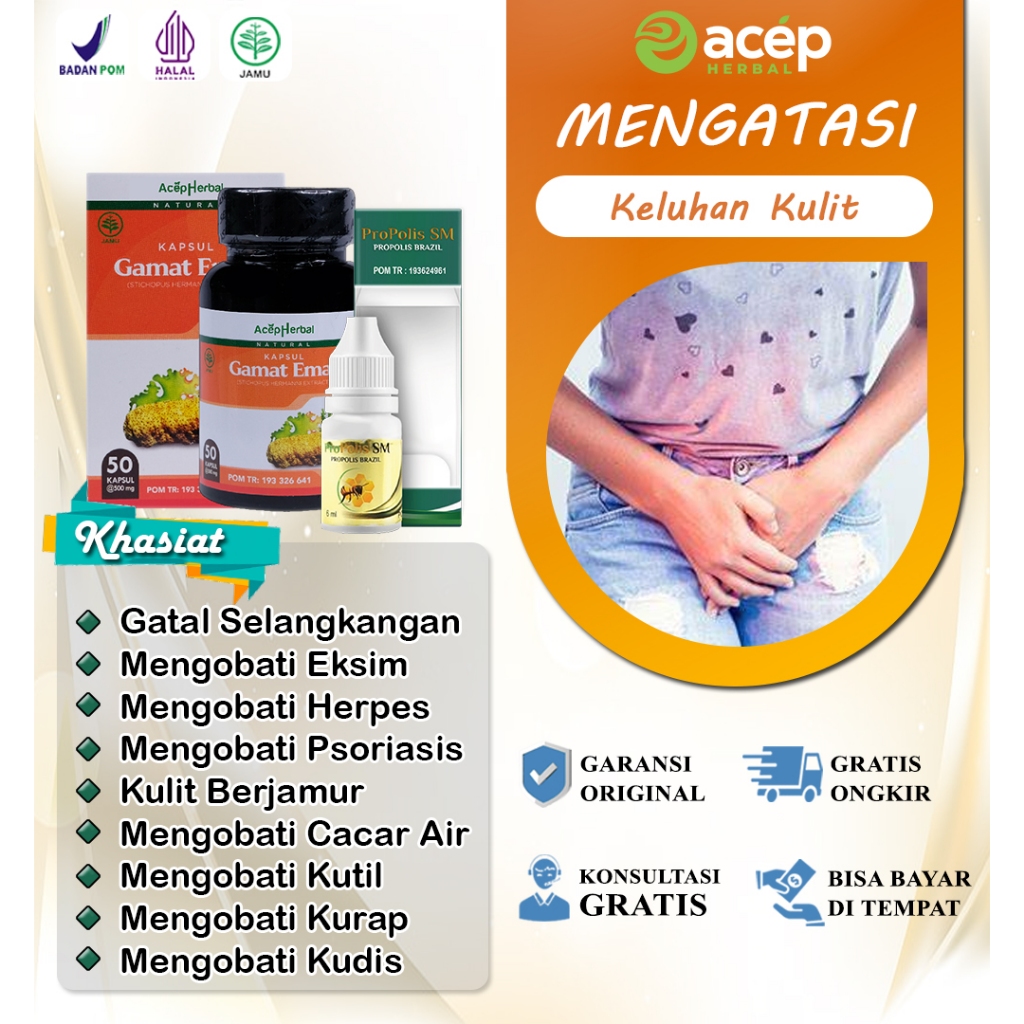 Obat Gatal Selangkangan Hitam Eksim Herpes Kurap Kudis Propolis Sm Kapsul Gamat Emas Asli Original