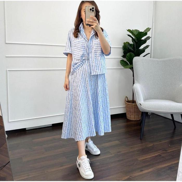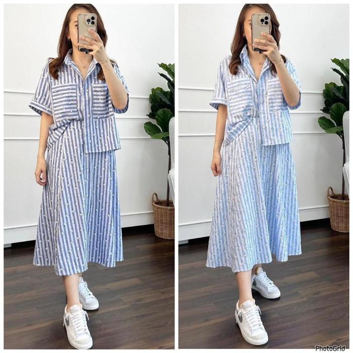 Flo Cotton Set / Setelan Wanita Atasan Dan Rok 2567 - Biru Muda Pita 2565
