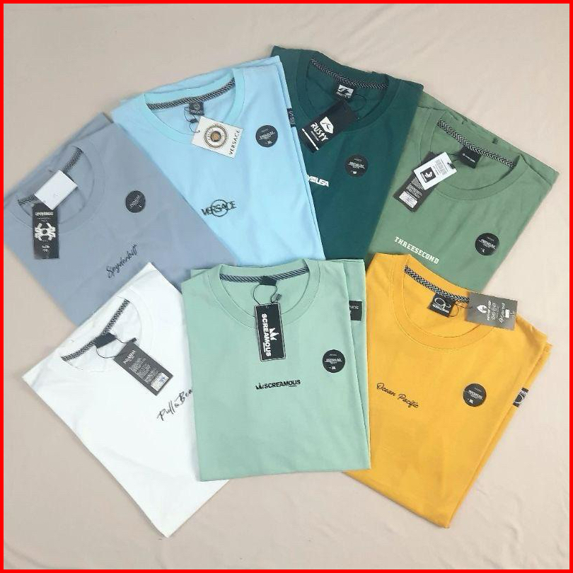 Kaos 4 Pcs 100 Rb Pria Distro Mix Brand Motif Simple Pria Dan Wanita Bahan Semi Katun Pe Soft 24s M L Xl Xxl