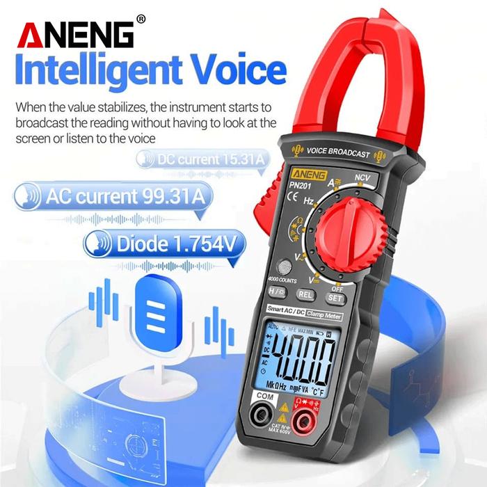 Aneng PN201 Digital Clamp Meter Voice Broadcast Mandarin Multitester DC/AC