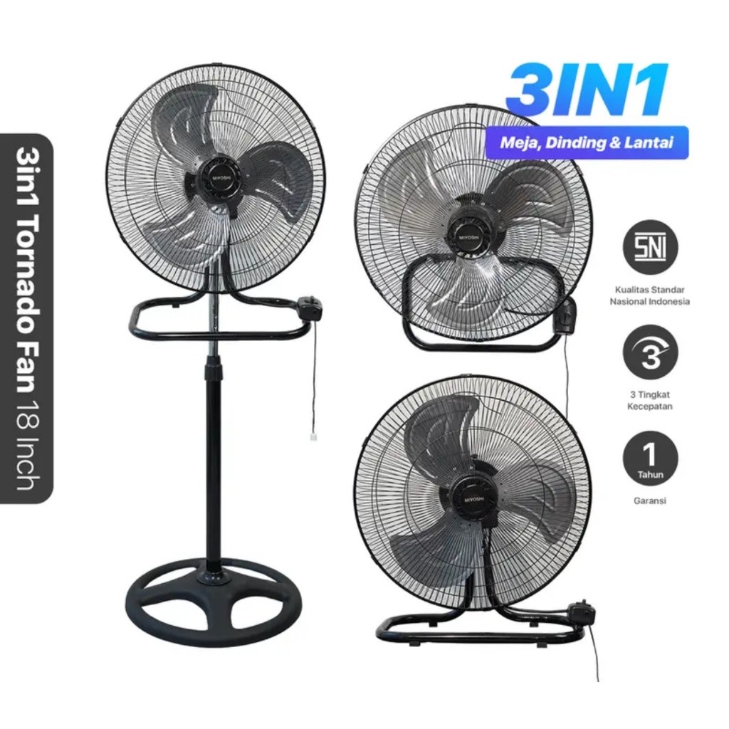 Miyoshi Kipas Angin Besi 3in1 18 inch 1803 - Kipas Jumbo Stand / Desk / Wall Fan 18" Bergaransi (K)