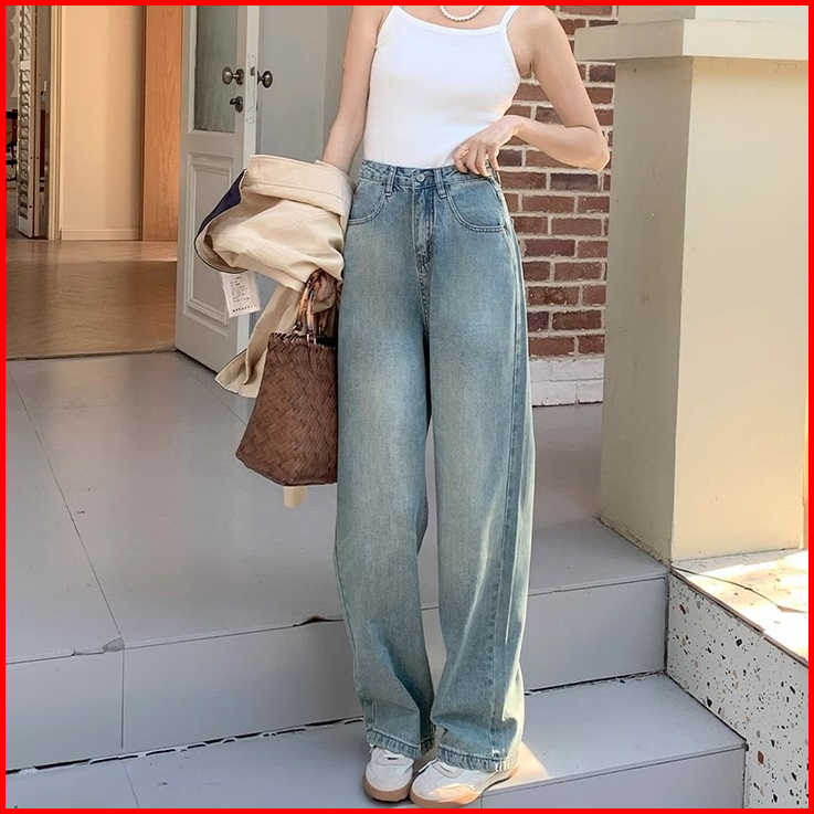 Veegirl Celana Jeans Gombrong Wanita Jeans Highwaist Kulot Panjang Celana Fashion Korean Style Baggy Jeans Jumbo Casual