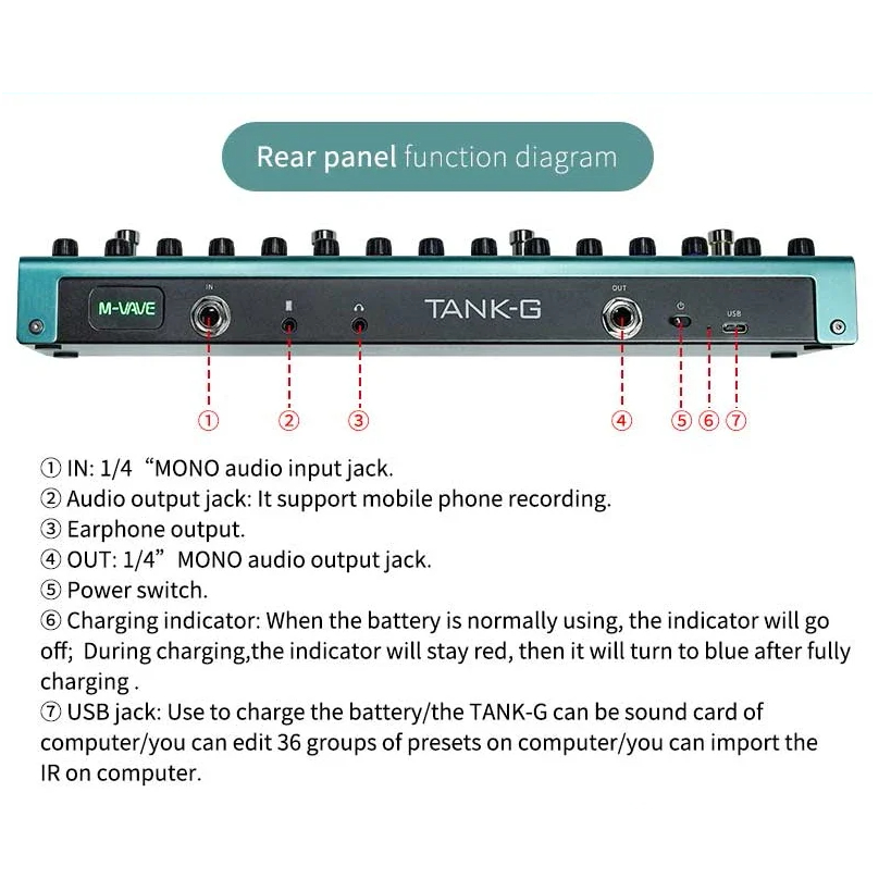 M-VAVE Tank-G Gitar Multi-Efek Pedal Soundcard Interface Rechargeable Cocok Untuk Gitar