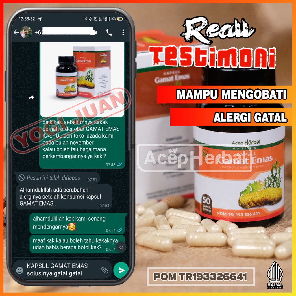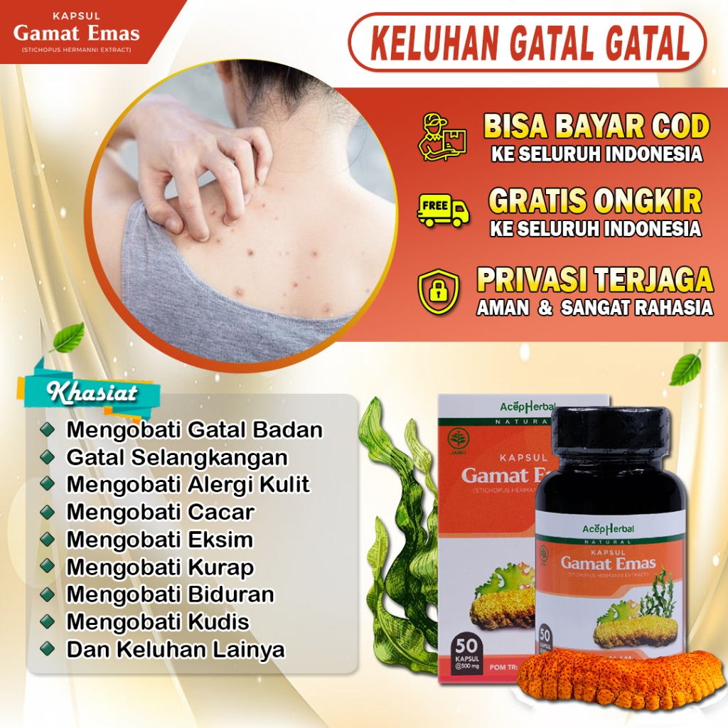 Obat Gatal Seluruh Badan Eksim Kurap Herpes Alergi Cacar Air Biduran Kaligata Panu Gamat Emas Kapsul