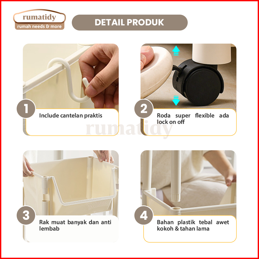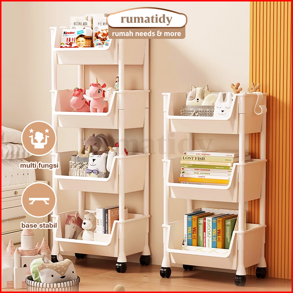 Rumatidy - Rak Buku Susun Anak Troli Serbaguna Rak Toilet Dapur Rak Dengan Roda Kuat Awet Estetik