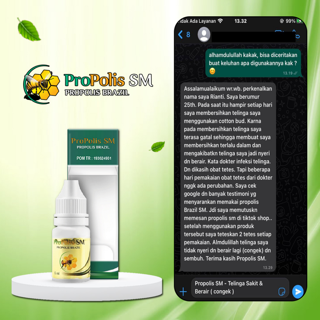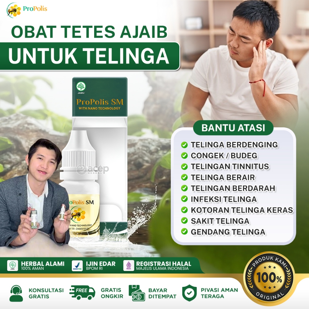 Obat Tetes Telinga Gatal Berair Berdengung Congek Budeg Kotoran Keras Bernanah Infeksi Telinga Tinnitus Propolis Sm