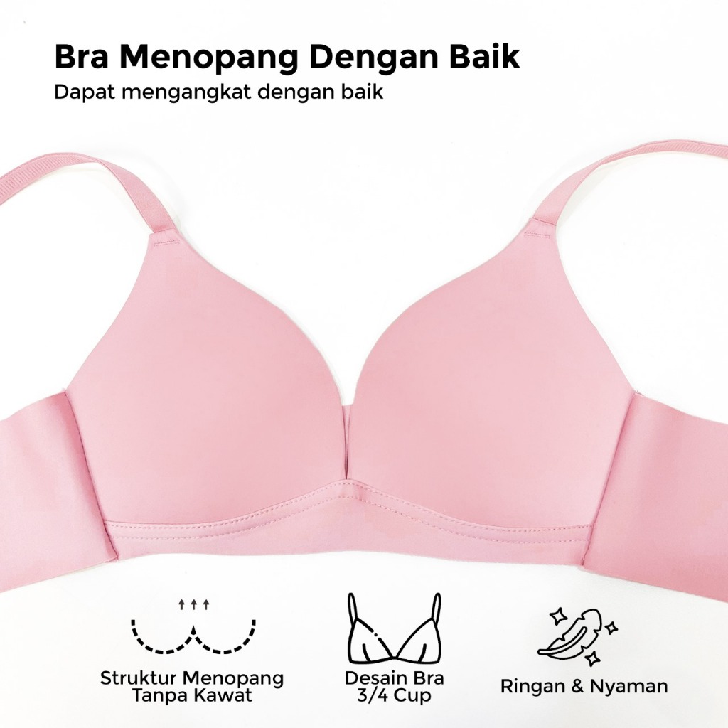 Tally Sarwendah Bh 3115 Bra Tanpa Kawat Busa Tipis Bahan Nilon Seamless Baby Skin Cup A Kait 3 Bra Breatable Pakaian Dal