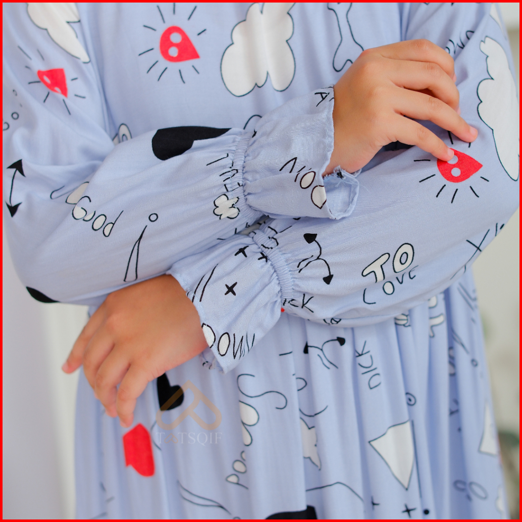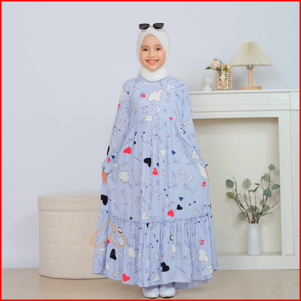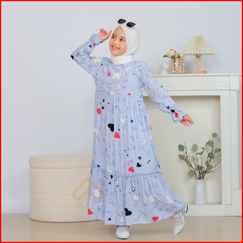 Tatsqif Gamis Dress Anak Usia 3-12 Tahun Quality Syari Perempuan Motif Full Love Rayon