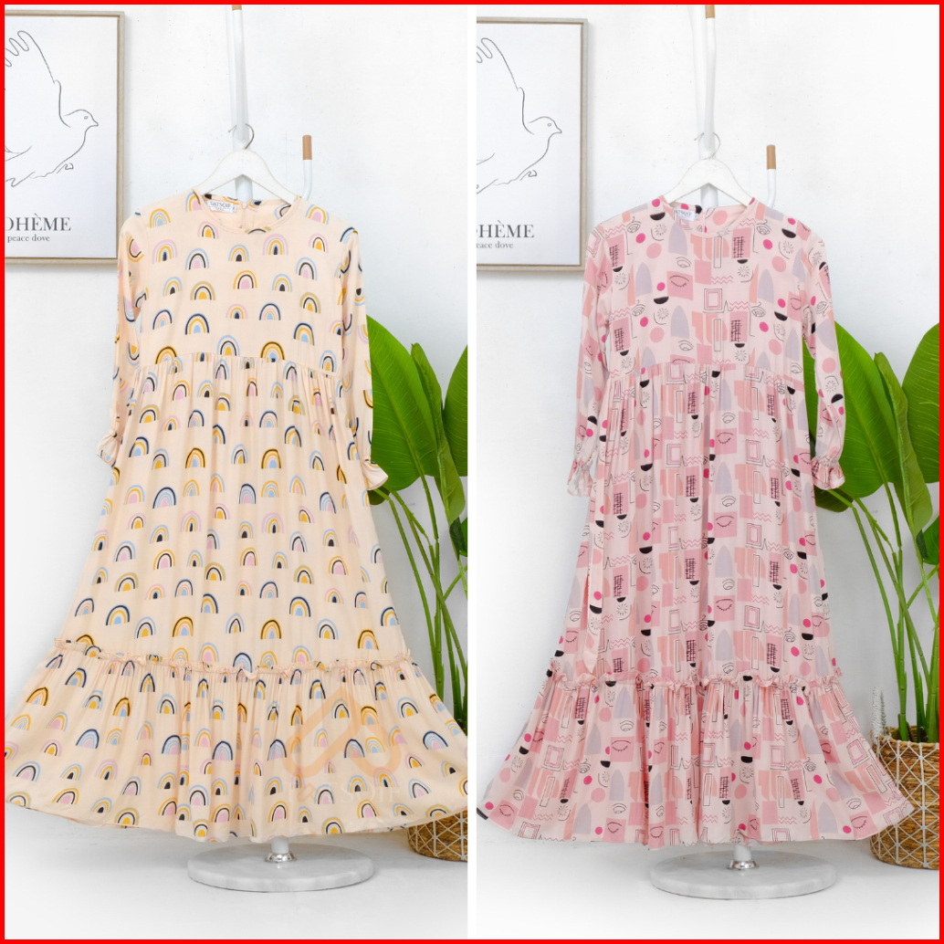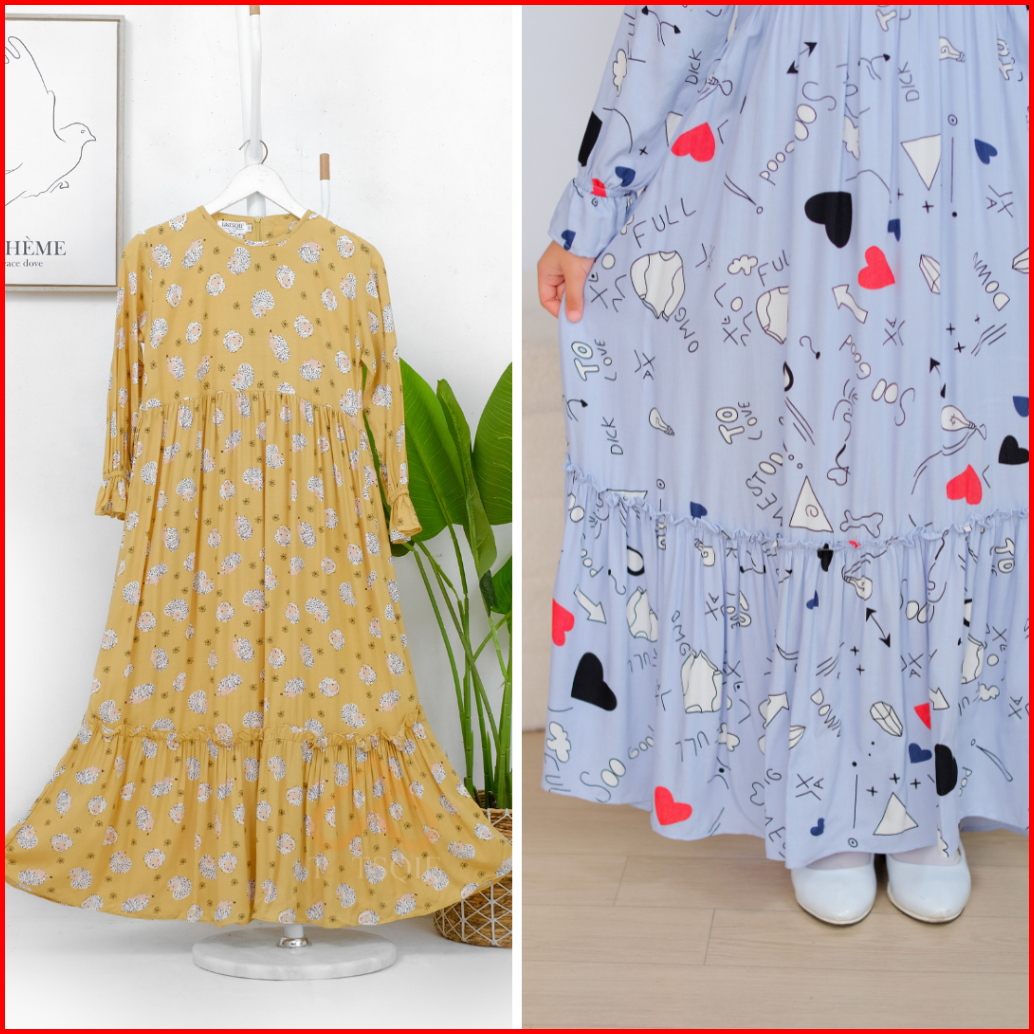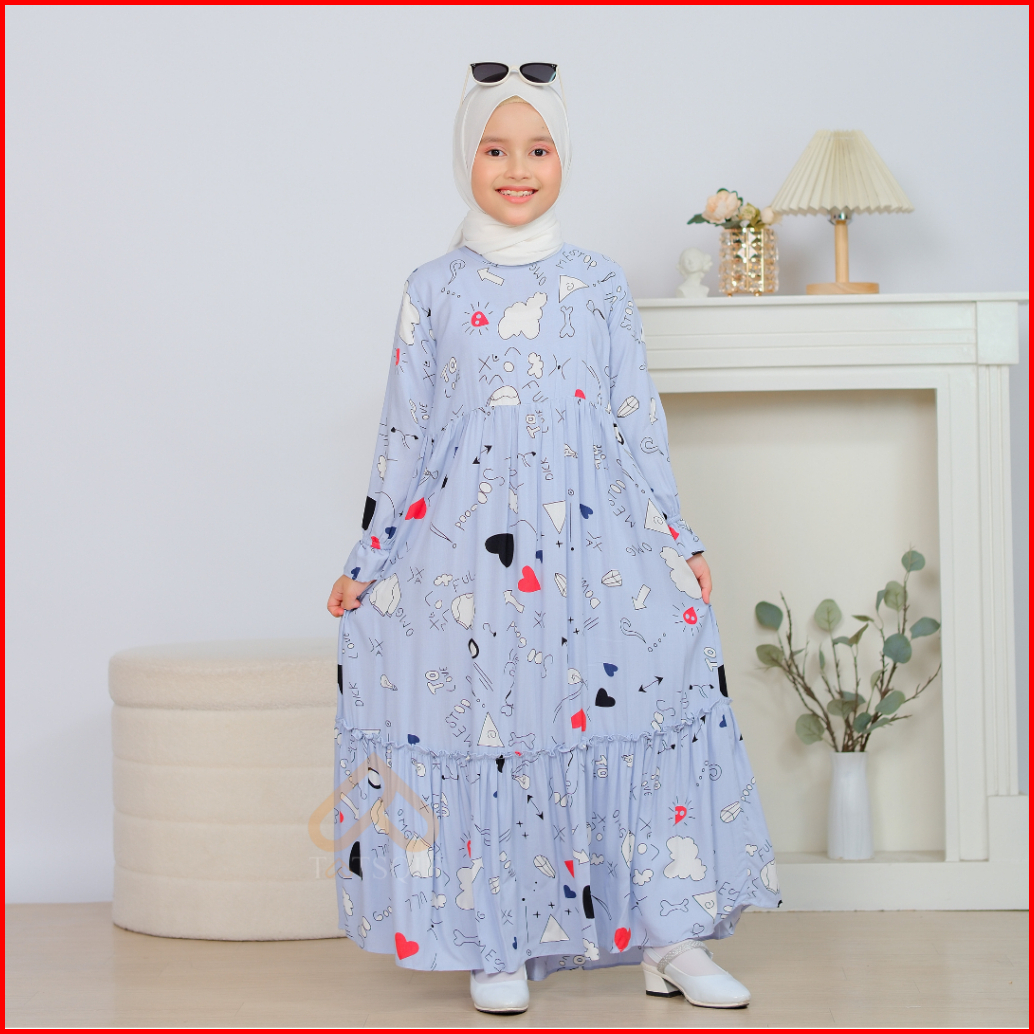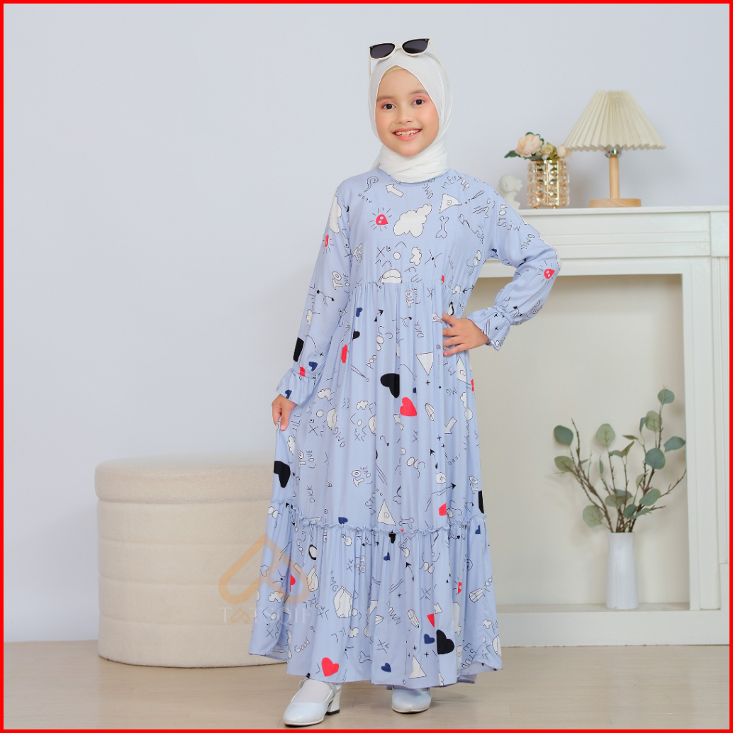 Tatsqif Gamis Dress Anak Usia 3-12 Tahun Quality Syari Perempuan Motif Full Love Rayon