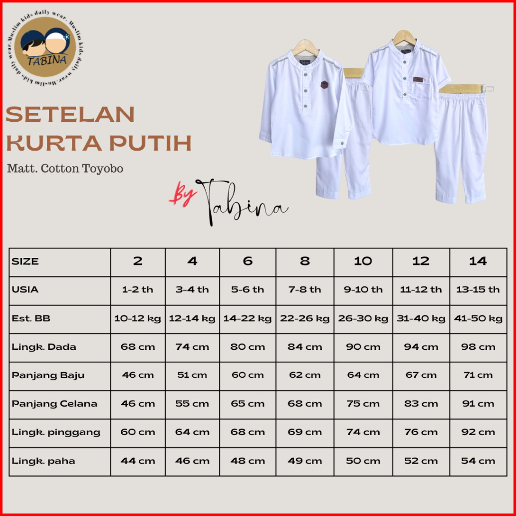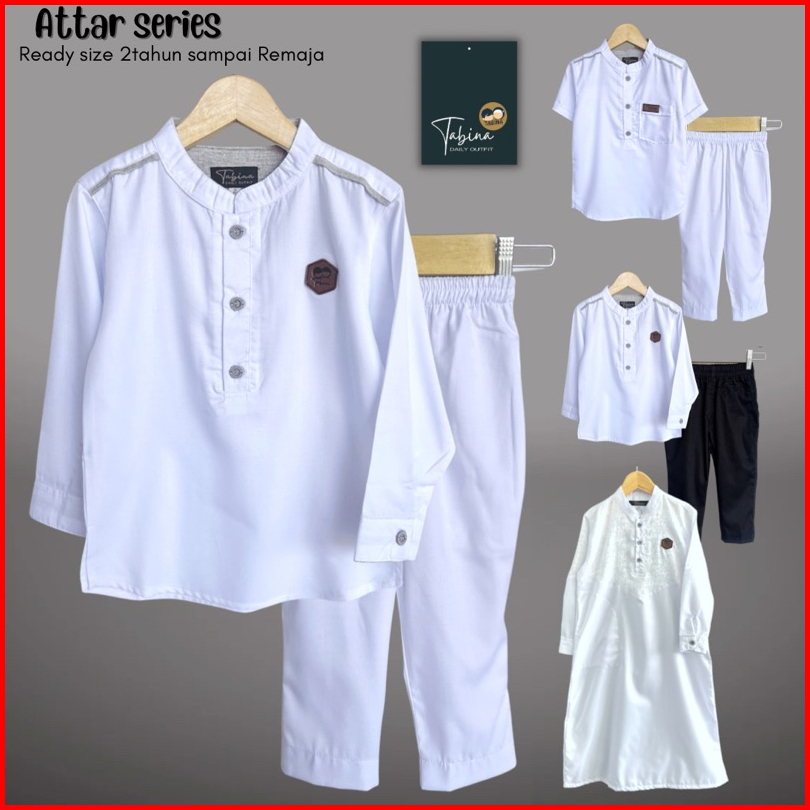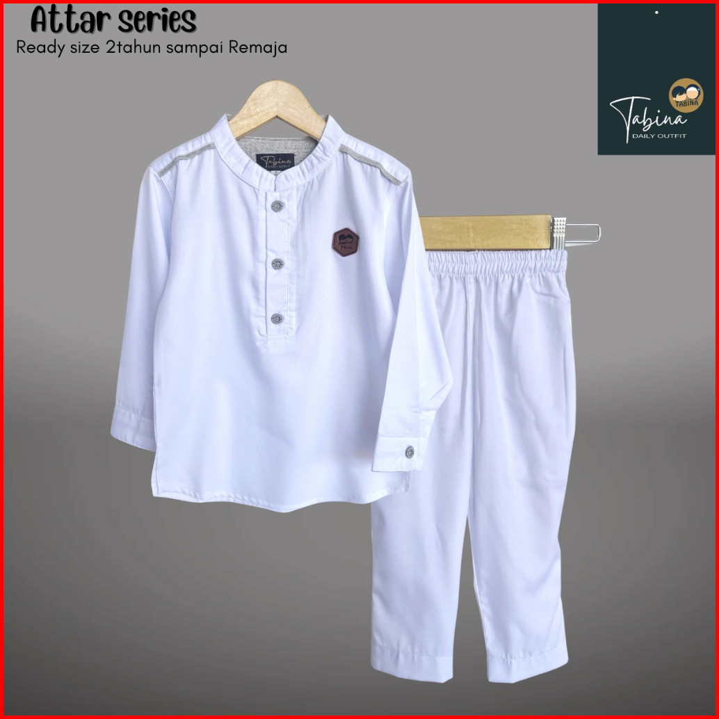 Setelan Koko Kurta Putih Lengan Panjang Anak Laki-laki Tabina Seri Attar Usia 1 Hingga 16 Tahun