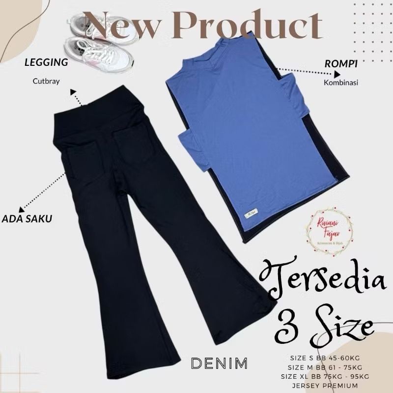 One Set Baju Olahraga 2 Warna Kombinasi Jersey Celana Cutbray Wanita Muslim Sporty