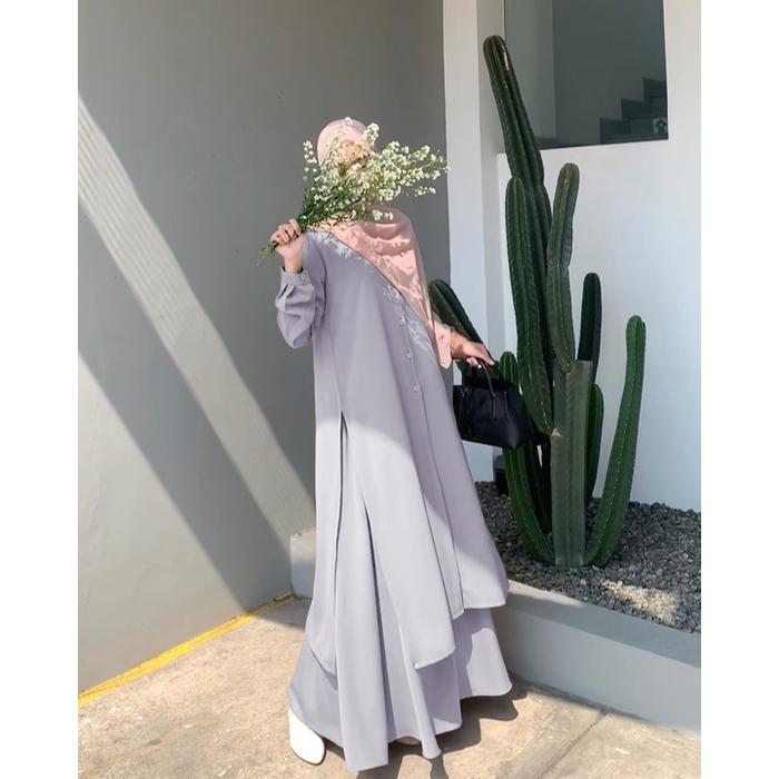One Set + Rok Tunik Hanum Busui Wanita Muslim Jumbo Gamis Syari Murah - Dusty, L