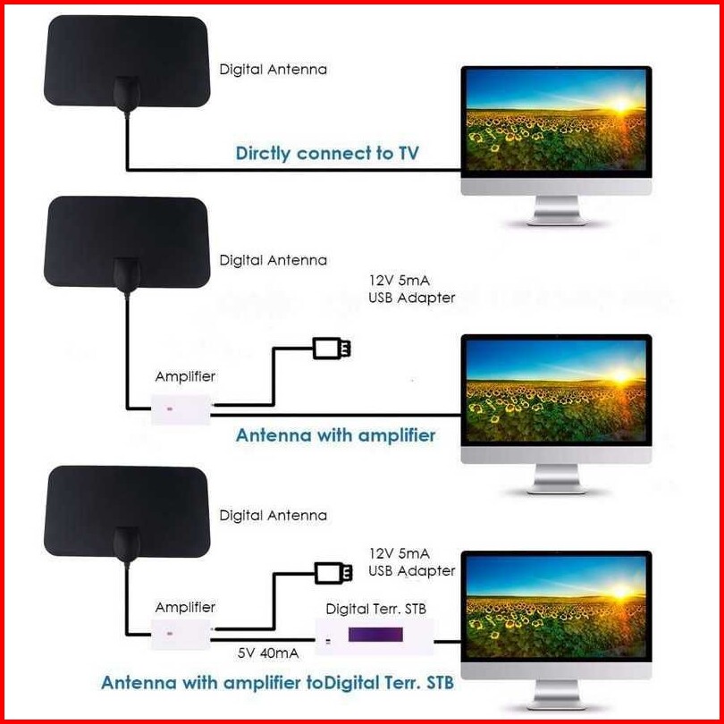 Antena Tv Digital Dvb-t2 Super Jernih 4k High Gain 25-db