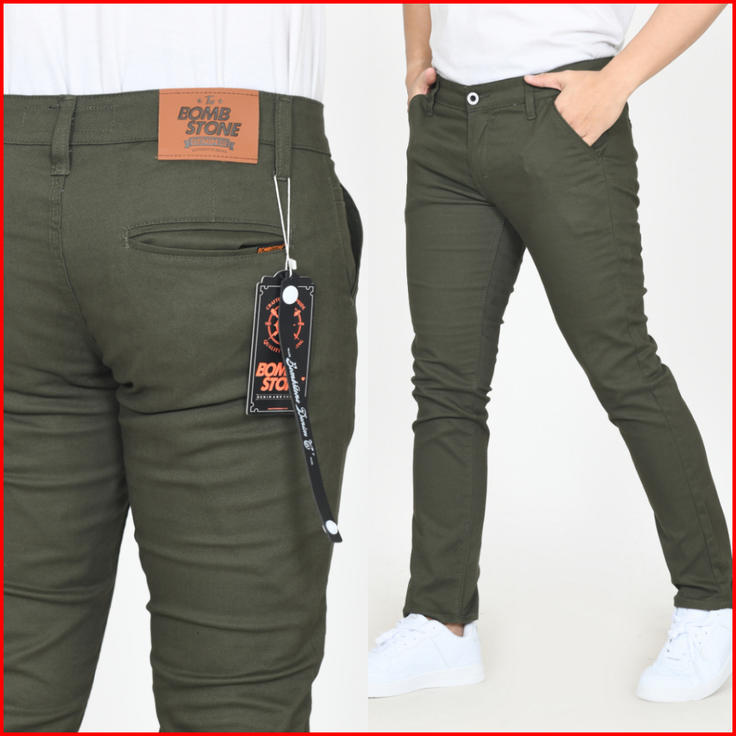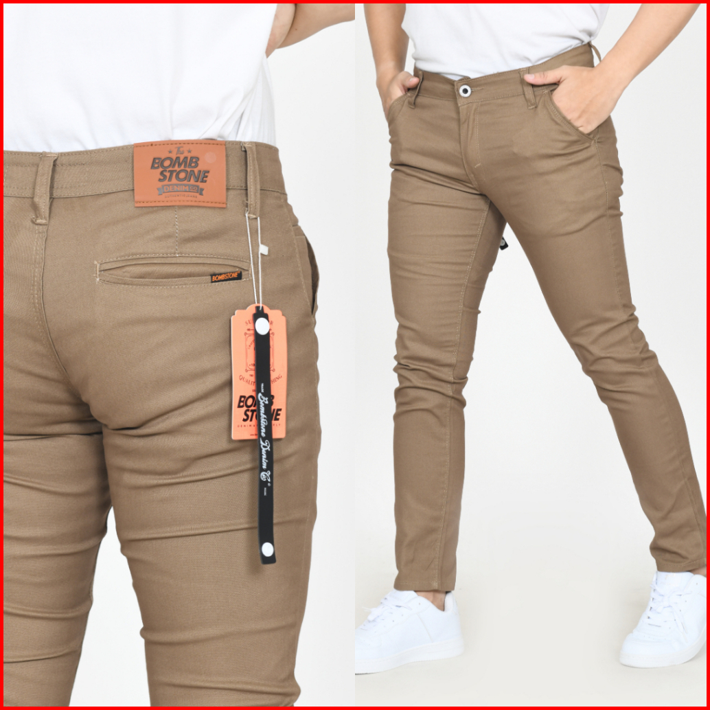 Bombstone Celana Chino Panjang Pria Slimfit Katun Stretch Melar