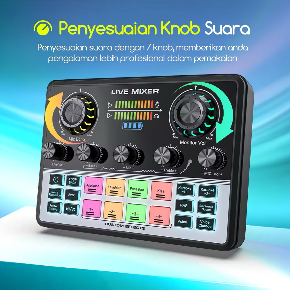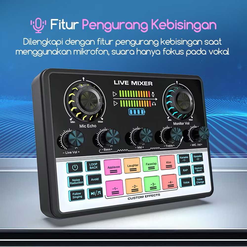 IDEELAB&Bonkyo V9 Soundcard Mixer Multi Fungsi – Alat Live Streaming/Nyanyi dengan Pengurangan Kebisingan & Ganti Suara
