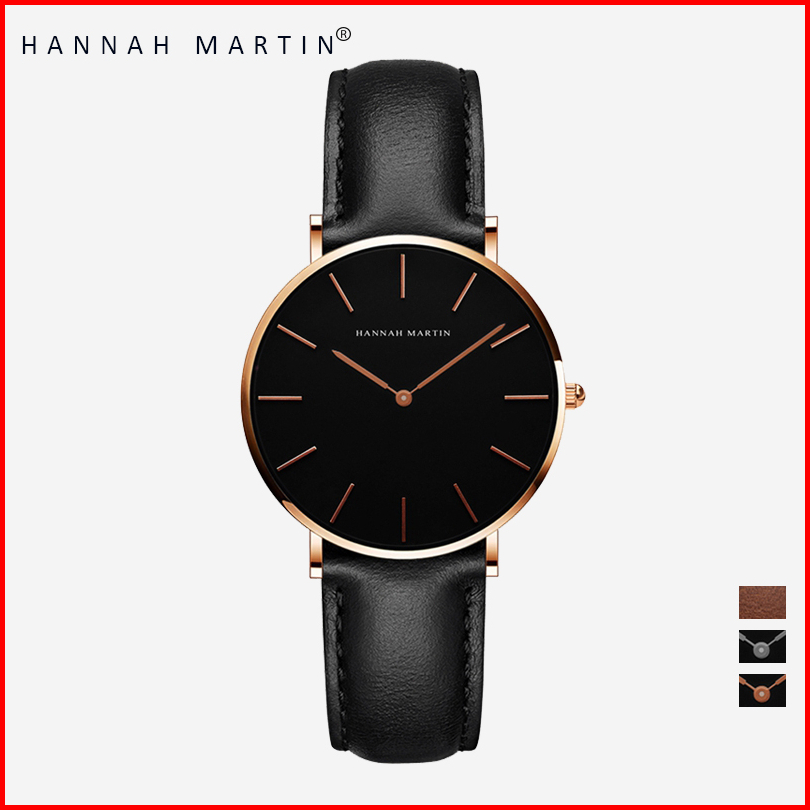 Hannah Martin Jam Tangan Wanita Sangat Tipis 100 Original Fashion Kecil Simple Jam Cewek Quartz Kulit Anti Air Murah Arl