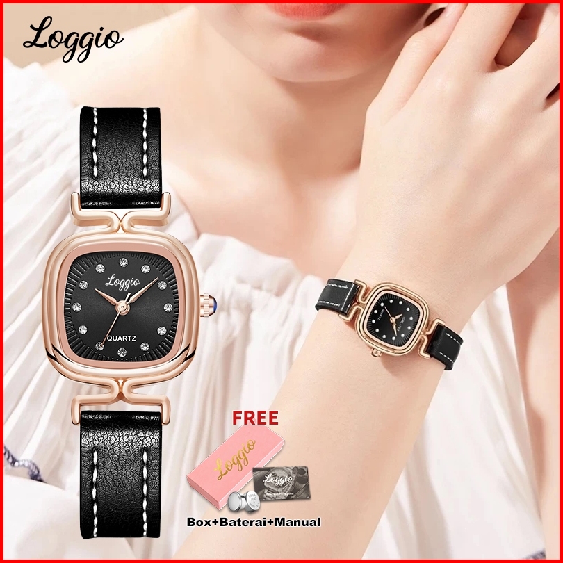 Loggio Jam Tangan Wanita Wanita Analog Original Korea Waterproof Watches Retro Kuarsa Berlian Jam Tangan Cewek
