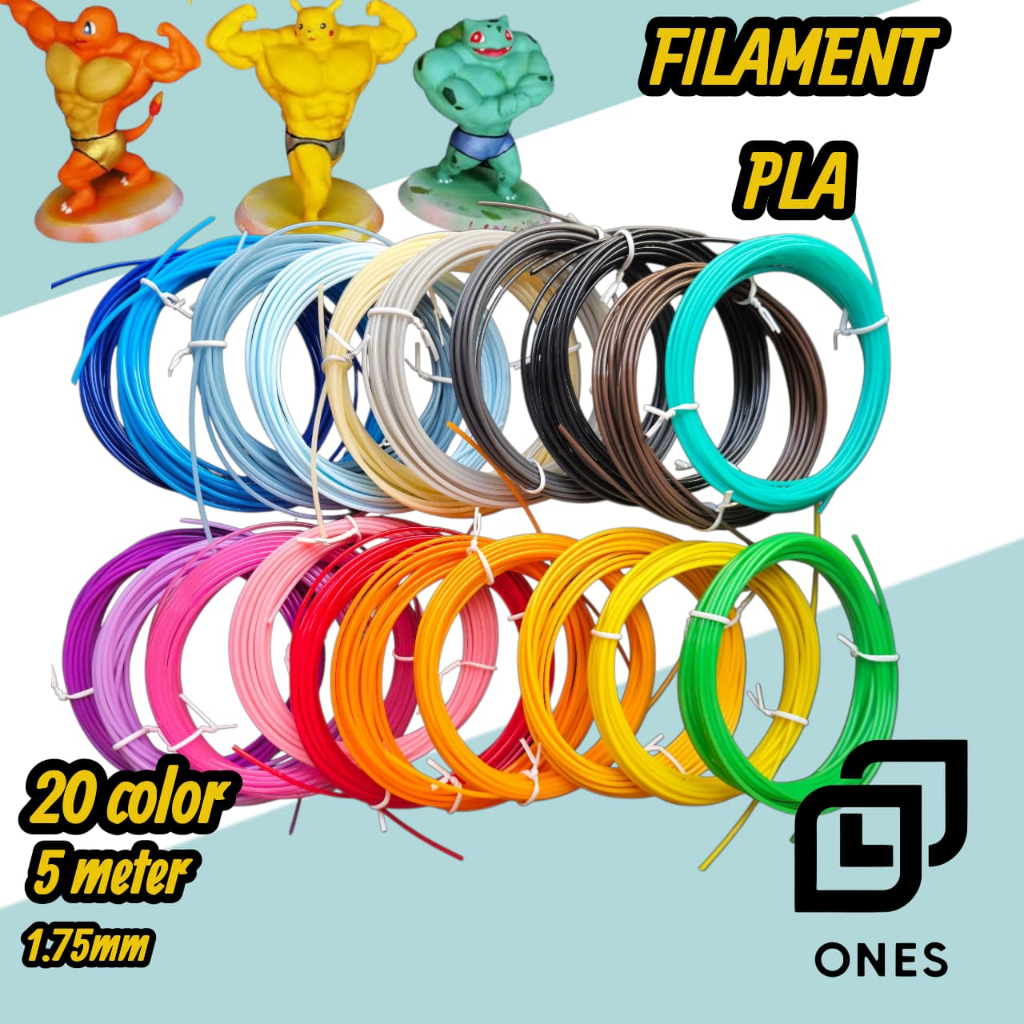 Filament 3D pen / printer PLA 20 warna Filament printing PLA refill 3d 20pcs panjang 5M tebal 1,75mm