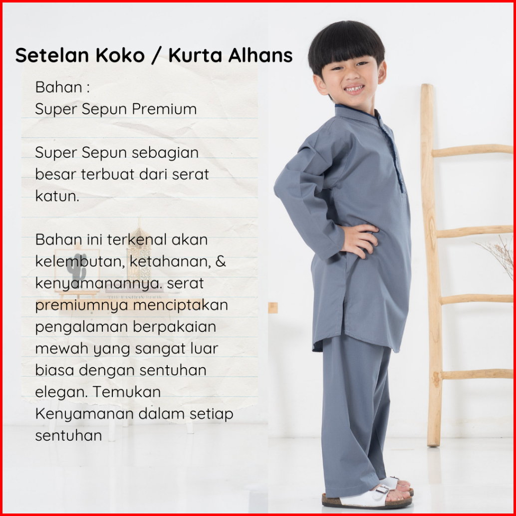 Alhans Setelan Koko Anak Usia 1-10 Tahun Lengan Panjang Model Hasbi Series