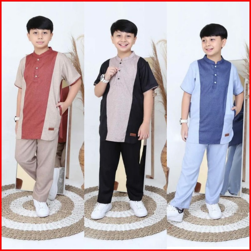 Baju Setelan Koko Anak Laki Laki Al Amam Lengan Pendek Usia 8-16 Tahun New