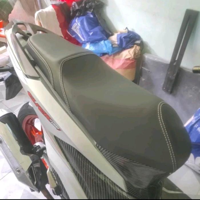 Jok Pcx, Cover Jok Motor Mbtech Pcx 160, Pcx 150, Sarung Jok Motor, Kulit Jok - Benang Putih