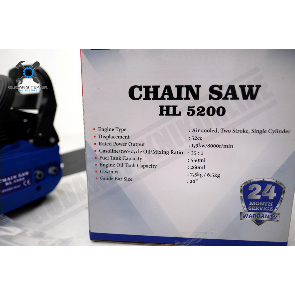 Mesin Gergaji P0T0NG Kayu Chainsaw H&L HL 5200 / Chain Saw HNL HL5200 20" Inch Gigi