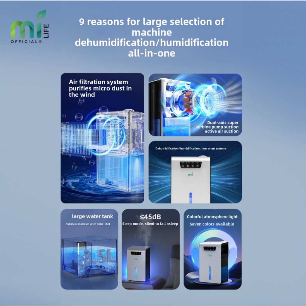 MiLife Dehumidifier dan Humidifier 3.2L 2in1 Serap Air Penyerap Kelembapan Udara RGB Lampu Malam