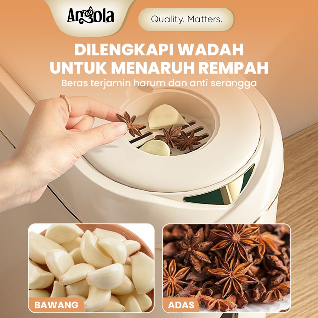 Angola Dispenser Beras Otomatis 5-10KG E29-E31 Tempat Penyimpanan Beras Food Grade Anti Kutu