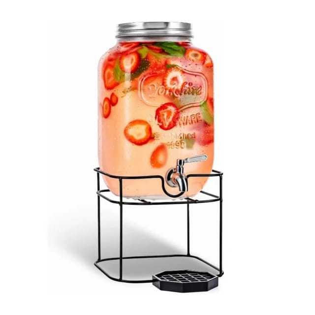 DISPENSER AIR MINUM KACA 8 LITER BEVERAGE DISPENSER GLASS PLUS PENYANGGA RAK BESI