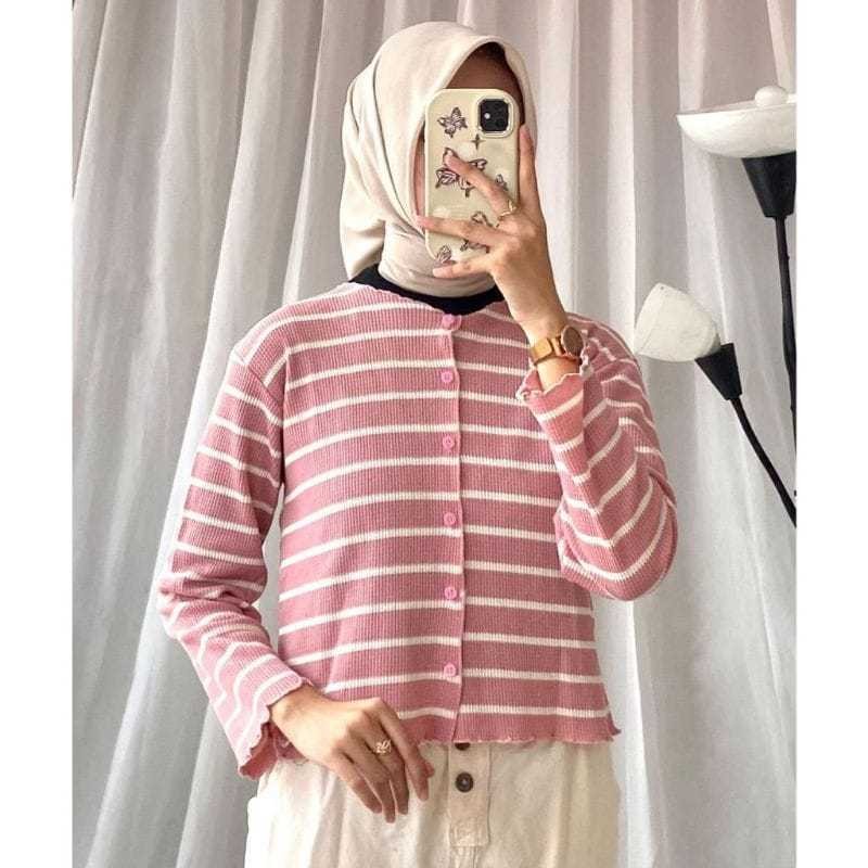 Waffle Cardigan Knit Salur / Fashion Cardigan / Atasan Cardigan Kekinian / Cardigan Waffle Salur