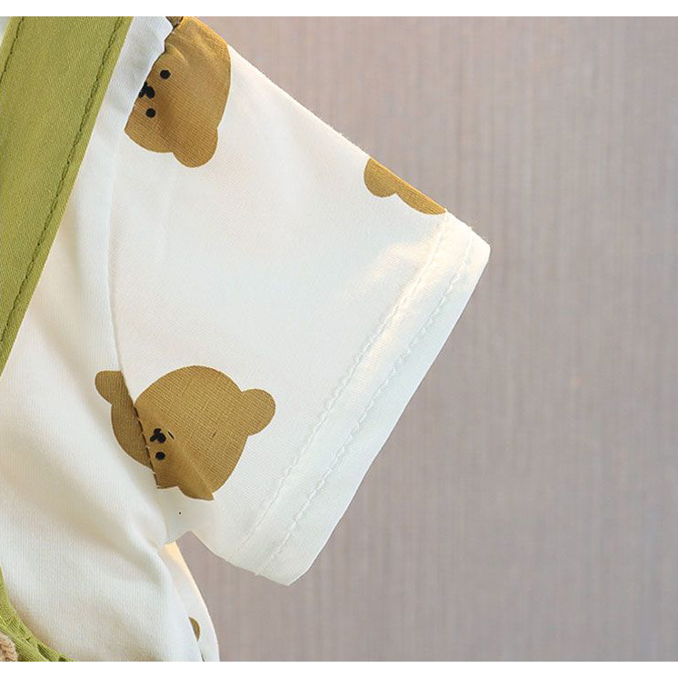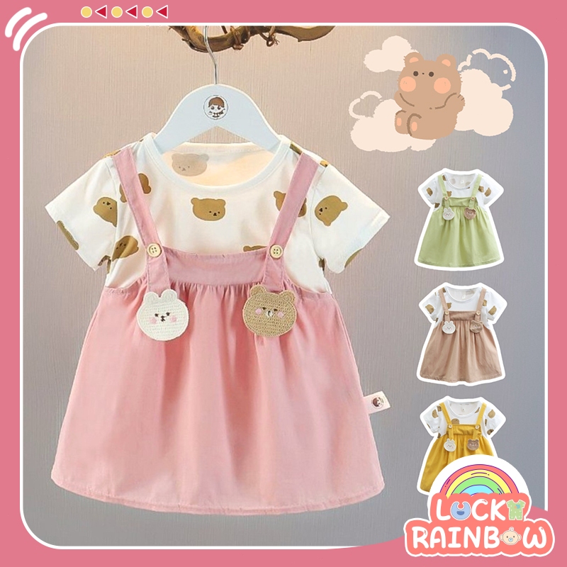 3 Bulan - 2 Tahun Dress Bayi Perempuan Desain Beruang Cantik Dress Katun Lengan Pendek Anak Perempuan Dengan Motif Berua