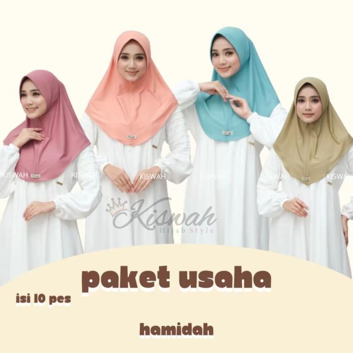 Kiswah - Hijab Paket Usaha 10 Pcs Hijab Pinguin Hamidah Muslim Bergo Instan Nyaman Variasi Kerudung Casual Simple Pad -