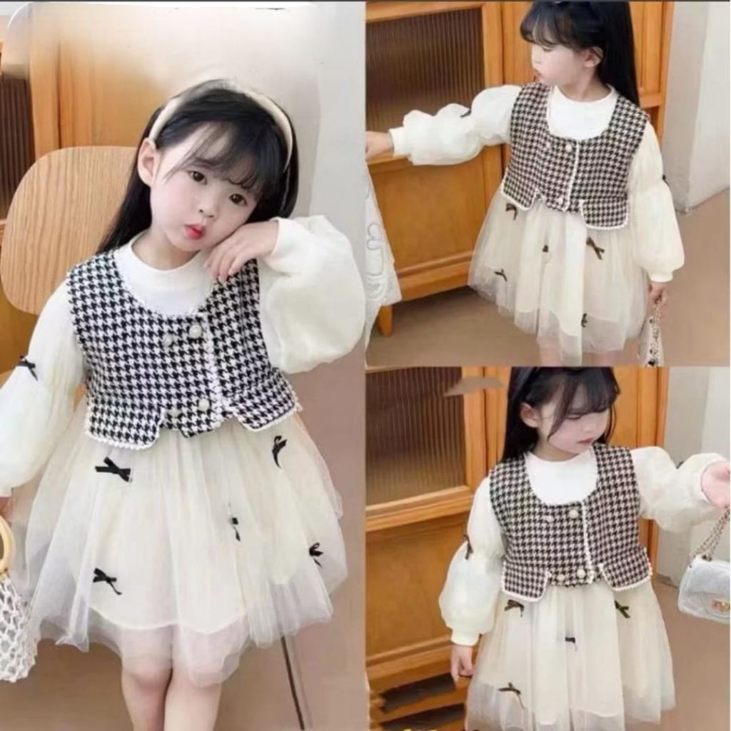 Lengan Balon Dress Anak Perempuan 1 - 4 Tahun Dress ara Anak Perempuan Lengan Panjang Motif Pita