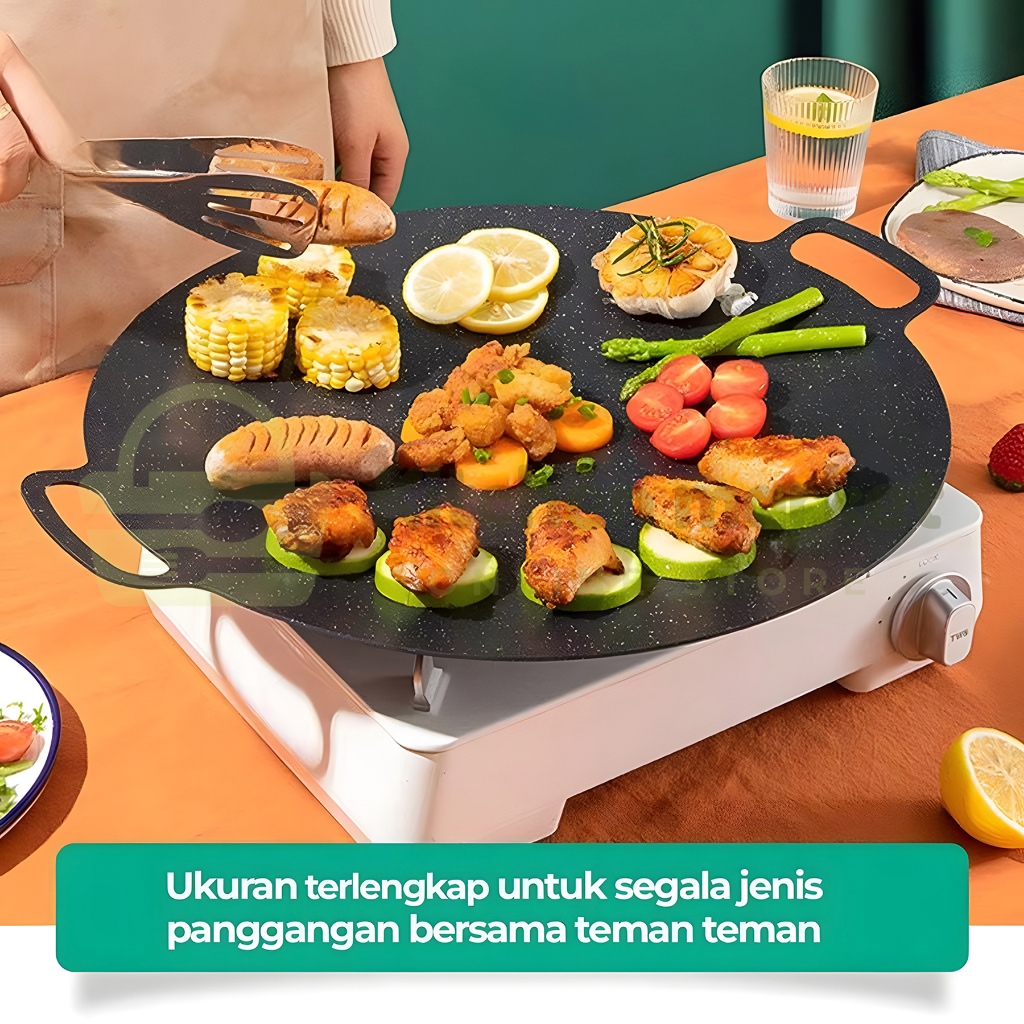 (KM) Alat Panggangan BBQ Grill Pan Korean Wajan Bulat Anti Lengket Serbaguna