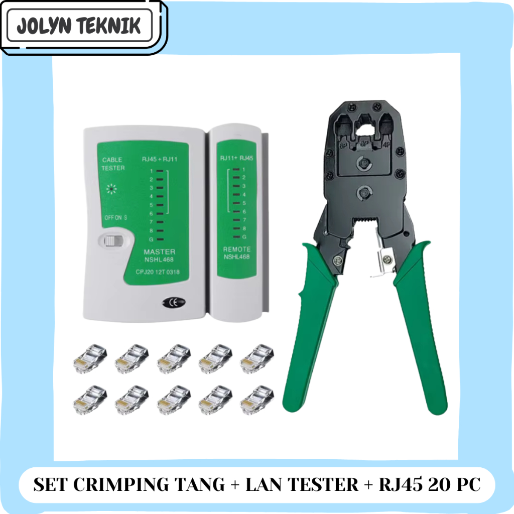 CRIMPING, LAN TESTER, 10 PCS KONEKTOR RJ45, 20 PCS KONEKTOR RJ45, SET SEMUA